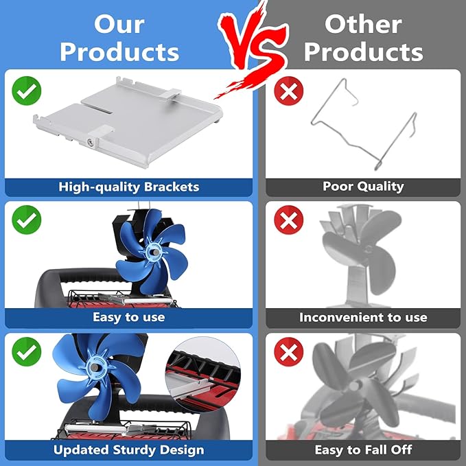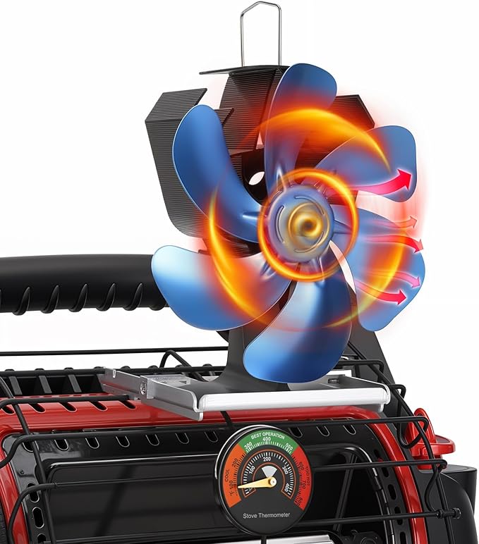 - 💥【MORE SAFETY AND PROTECTION]】The woodstove fan is made of anodized aluminum, which will not rust or corrode when the fan is hot.The fireplace fan has a bimetallic strip in the base. When the maximum operating temperature is reached, the strip raises the edge of the fan slightly, which protects the fan from damage caused by high temperatures.