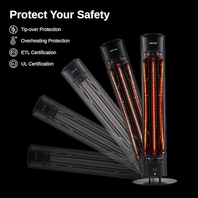 EAST OAK 1500W Infrared Electric Patio Heater, Indoor/Outdoor Tower Space Heater with Remote Control, 24H Timer, Waterproof IP65, Safety Tip-Over & Overheat Protection for Garage, Deck, Backyard