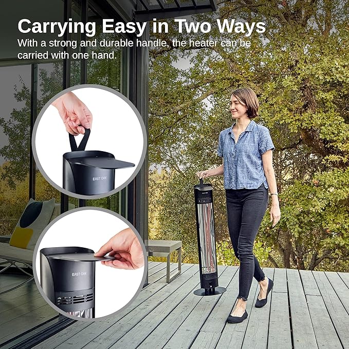 - Versatile Indoor & Outdoor Use-With a built-in handle and remote control, this portable heater is easy to move and operate. Ideal for patios, garages, living rooms, outdoor cafés, and more—wherever you need fast, focused warmth.