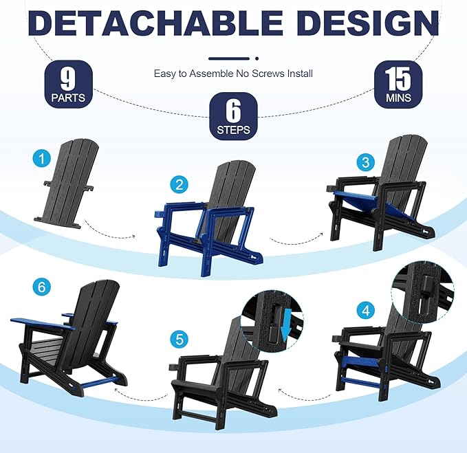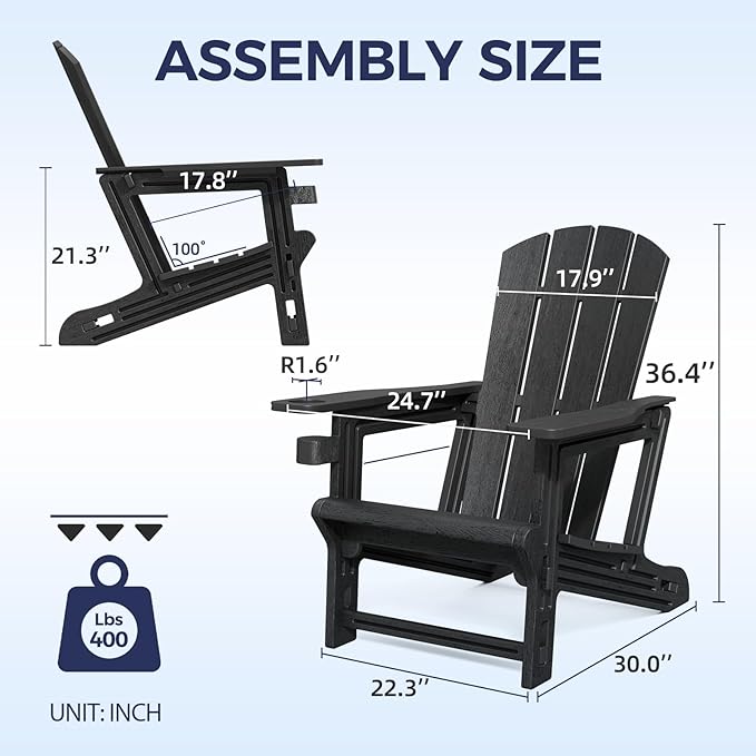 - Durable Outdoor Construction: Adirondack chairs feature outdoor weather-resistant HDPE Plastic for exceptional weather resistance. The material is UV-resistant and effectively prevents fading