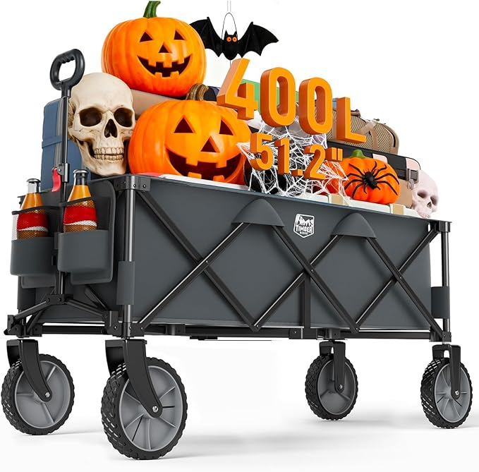 - HEAVY DUTY FOLDING WAGON: TIMBER RIDGE extended cart adopts the stable design of three cross chassis and 25×12mm thickened high-strength metal frame, which is more stable and safer than other carts, and it can easily withstand 500 pounds.(For daily use, we recommend a weight load of 350 lbs, with a maximum limit of 500 lbs. Labels/manuals may vary by batch, but all products are tested to the above capacity.)