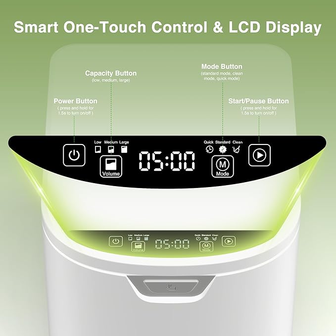 - 【Smart One-Touch Operation】- Our compost bin with a simple LED display and one-touch start function, anyone can easily operate it. Track composting progress in real-time and enjoy a hassle-free, smart experience.
